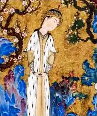 The Pishdadian kings are figures in Persian mythology, about whom a number of legends are recorded in Zoroastrian texts, including the Avesta, and in the Shahnameh,[1] a medieval Persian poem recognised as Iran's national epic.[2] From the 9th century, the Pishdadians also appear in Arabic prose works of Muslim writers.[3] The overwhelming evidence is that the existence of the Pishdadian dynasty has no historical basis.[4] The various tellings of their story nevertheless portray them as the first Iranian dynasty ruling a mythical kingdom that existed at a time before the Achaemenids, the first historical Persian dynasty.[1] The etymology of Pishdadian (from Persian: پيشداد, pišdād) is usually thought to mean "those who first promulgated laws". However, an alternative view is that it comes from paradhata, a word from the Avesta, meaning "created before [others]" or "first created".[5]
