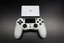 Instead of featuring a display screen, the console connects to a television via HDMI. Users can play using a DualShock 3 controller[24] (with functionality for DualShock 4 controllers added with the 3.10 firmware update released on March 25, 2014[25]), although due to the difference in features between the controller and the handheld, certain games are not compatible with PS Vita TV, such as those that are dependent on the system's microphone, camera, or gyroscopic features.[3] The device is said to be compatible with over 100 PS Vita games,[26] as well as various digital PlayStation Portable, and PlayStation titles, along with a selection of PlayStation 3 titles streamed from the PlayStation Now service.[27] The device is technically referred to by Sony as the VTE-1000 series, to distinguish it from the handheld PCH-1000/2000 series PS Vita models.[28]