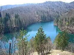 Scientists have so far identified 109 species in the area of the national park, of which 75 species are endemic.[19] A great number of these plants and species are protected by law. Within the national park area 55 different species of orchids occur.[9] The plant diversity creates an interesting interplay of colours that change with the seasons. The national park has an area of 29,842 hectares, of which some 22,308 hectares consists of forests (74.75 percent), 6,957 hectares are meadows (23.31 percent) (mainly in village areas), and 217 hectares (0.72 percent) are water areas.[5] A unique area is the forest of Čorkova uvala, a 79.50 ha virgin forest in the northwestern part of the park. Some of the beech and fir trees in this area of the park are up to 700 years old.[11][20]