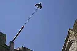 Papingo target on pole at the top of Kilwinning Abbey tower