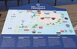 The Port of Olympia, the southern most open water port on Puget Sound, consists of the city's Marine Terminal, an office for real estate transactions with the authority, the NewMarket Industrial Campus, the Olympia Market District on the inlet peninsula, Olympia Regional Airport, and the Swantown Marina and Boatworks.[1][10] The Olympia port is one of 11 deep draft ports in the state.[11]