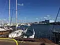 The harbour includes a sailing and passenger marina and performs a small reloading service for goods in mainly domestic traffic. Facilities within the port encompass a shipyard, fish-processing plants, a shell ice factory and a fish meal factory.[1] Additionally, the port serves as a coastal SAR (Search And Rescue) station and a sea border crossing.[8]