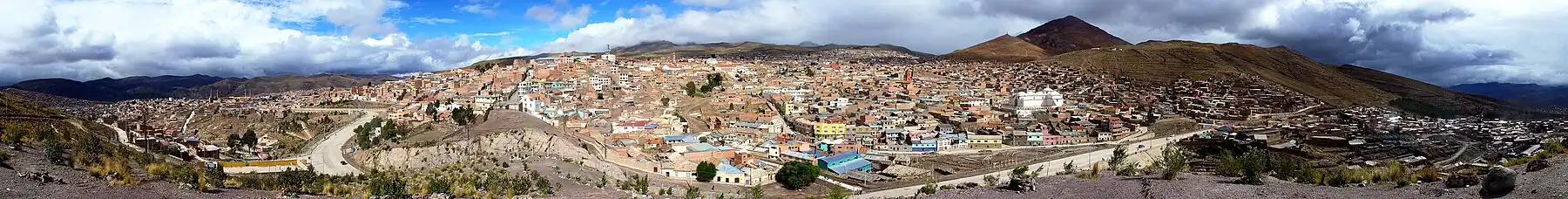 Potosí lies at the foot of the Cerro de Potosí[4]—sometimes referred to as the Cerro Rico ("rich mountain")—a mountain popularly conceived of as being "made of" silver ore that dominates the city. The Cerro Rico is the reason for Potosí's historical importance since it was the major supply of silver for the Spanish Empire until Guanajuato in Mexico surpassed it in the 18th century.[5]