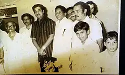 Prem Nazir (born Abdul Khader; 23 March 1929 – 16 January 1989) was an Indian actor known as one of Malayalam cinema's definitive leading men of his generation. He is widely regarded as one of the most influential actors in the history of Indian cinema. A popular cultural icon of Kerala, Nazir is often referred to as Nithyaharitha Nayakan ("Evergreen Hero").[1] Nazir began his career as a stage actor and made his film debut with the 1952 film Marumakal. He took on the stage name Prem Nazir, named by Thikkurissi,[2] on the sets of his second film, Visappinte Vili.[3]