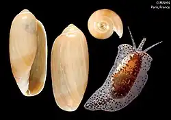 | Shell and animal of Hyalina buskei (holotype at MNHN, Paris) | |