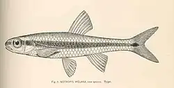 The bluenose shiner (Pteronotropis welaka) is a species of is a species of freshwater ray-finned fish belonging to the family Leuciscidae, the shiners, daces and minnows. It is found only in the United States, mostly in Florida and parts of Alabama and Georgia; its habitat is deep, slow-moving coastal creeks and small to medium rivers and prefers deep pools than shallow areas.