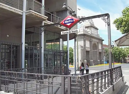 Puerta de Toledo [ˈpweɾta ðe toˈleðo] is a station on Line 5 of the Madrid Metro, located under the Puerta de Toledo. It is located in fare Zone A.[1]