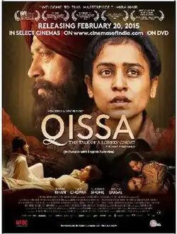 Qissa is a 2013 Indian-German drama film written and directed by Anup Singh. The Punjabi-language film was released in Indian theaters on 20 February 2015 nationwide and simultaneously on DVD and VOD as well.[1] The film was screened in the Contemporary World Cinema section at the 2013 Toronto International Film Festival[2][3] where it won the Netpac Award for World or International Asian Film.[4] The theme of the film focuses on desire of a Sikh man towards having a son to continue the family lineage.