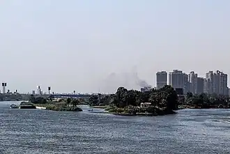 ![]() Northern part of Qorsaya Island with al-Munib bridge in the background | |