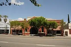The Ramona Town Hall was listed on the National Register of Historic Places in 1994.[13] It has also been known as Town Hall of Nuevo, and Barnett Hall.[13] The Hall was built on two lots donated by Milton Santee, who as noted above headed up the Santa Maria Land & Water Company syndicate.[14] Augustus and Martha Barnett donated the $17,000[14] "to the towns people of Nuevo, on Washington's Birthday, February 22, 1894." Ramona Town Hall was designed by architect William S. Hebbard, who later, with his partner, Irving Gill, produced San Diego's best architecture until its breakup in 1907. The building is one of the largest, and oldest, adobe structures in southern California.[14] Photographs of William Hebbard and Ramona Town Hall may be viewed on this San Diego Historical Society page, and on the Ramona Town Hall website.