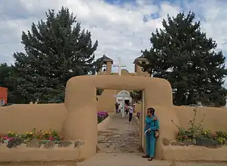 Before Spanish colonialists settled in the Taos area in 1716, the area was home to Taos Native Americans who ranched and farmed in the area.[3] There was a Spanish settlement in the Ranchos de Taos area by 1742[4] and there may have been residents of the Taos Pueblo who had farmed in the fertile area before that, in which case they sought the shelter of the Taos Pueblo during attacks by Comanche tribes.[4][5]