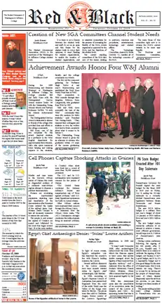 The Red & Black is the student newspaper for Washington & Jefferson College. The student staff handles all aspects of the production, including writing, editing, graphic design, layout, and advertising sales.[1] The Red & Black features campus events and happenings, student and faculty art, student opinion, college athletic coverage, and local and world news.[1] Founded in 1909, the paper goes to press every Thursday with a weekly circulation of 1,250 copies.[1]