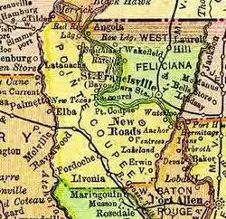 1895 map of Pointe Coupee Parish showing location of Red River Landing