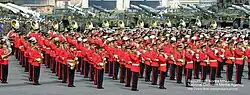 The Republic of Korea Army Band (ROK Army Band; Korean대한민국 육군군악대) is a South Korean state ceremonies unit of the Republic of Korea Army that is the representative marching band of the ROK Army and the seniormost one in the ROK Armed Forces, reporting directly to the Army Capital Defense Command. It specializes in Korean martial and traditional music and modernized adaptations of folk songs for performances during concerts.[1] It mainly performs at state arrival ceremonies at the Blue House in Seoul with the Joint-Service Guard of Honour. It was formed in the 1950s as a result of a pan-ROKAF creation of military bands.[2]