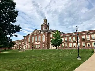 Built in 1939-1941, the Colonial revival-style school originally consisted of an academic building called Morton Hall, a gymnasium called Civic Hall, and McGuire Hall, which houses the Richmond Art Museum. After outgrowing the Civic Hall gymnasium, the Tiernan Center was built as the home to boys' and girls' basketball, volleyball, and wrestling. The old Civic Hall gymnasium was converted into the Civic Hall Performing Arts Center, an auditorium which seats 924 and is home to the Richmond Symphony Orchestra in addition to other school and civic performing arts events. The current building consists of 500,000 square feet for instruction and student support services.[3]