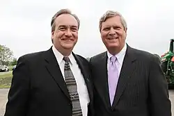 Rick Hansen and Tom Vilsack stand together at the launching of the Minnesota Agricultural Water Quality Certification program