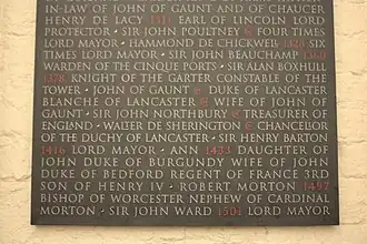 On 16 October 1486, Morton became Bishop of Worcester, and he was consecrated on 28 January 1487. On 15 March 1497, he received a pardon from Henry VII, which was intended to secure his property against extortions. He was the last English Bishop of Worcester before the English Reformation, with his successors being Italian, and served until his death in May 1497. He was buried in Old St Paul's Cathedral rather than his own Worcester Cathedral.[2] As a result, his grave and monument were destroyed in the Great Fire of London in 1666. His name is now listed on a monument in the crypt giving the names of important graves lost.