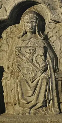 Robert de Brus, 1st Lord of Annandale, married a woman named Agnes. She has been identified in various old sources as either Agnes de Pagnall, daughter of Foulques de Pagnall (Fulk de Paynel) of Carleton, North Yorkshire,[13][14] or Agnes de Bainard, daughter of Geoffrey de Bainard, Sheriff of York. It has also been reported that he married twice to both of the above women. More modern research has revealed that both of these wives are unsubstantiated.[15] Evidence from charters involving Robert de Brus indicates that his wife Agnes was an heiress of the Surdeval family. Her exact parentage is not known, she may have been an unrecorded daughter of Richard de Sourdeval, who held many manors in the Yorkshire region. Alternatively, she may have been a daughter of either Richard's son Robert, or his daughter Matilda Maude de Sourdeval who married Ralph (Radulf) Paynel, Sheriff of Yorkshire.[16]