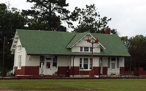 The Rock Island Depot is a historic railroad station at 157 North Front Street, Hazen, Arkansas. It is a single story stuccoed brick building with Mediterranean style, built in 1915 by the Chicago, Rock Island and Pacific Railroad (aka the "Rock Island Line"). Its main facade is oriented south, toward the former railroad tracks, with a projecting telegrapher's booth. It is topped by a tile roof with broad eaves supported by large brackets.[2]