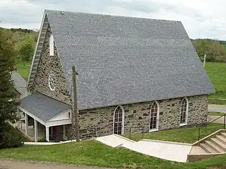 Rock United Presbyterian Church is a historic Presbyterian church located at Elkton, Cecil County, Maryland. It is a rectangular building of uncoursed rubble stone construction, three bays wide by three deep, with a steeply pitched slate-clad gable roof. It was originally constructed in 1761, and remodeled to its current Victorian Gothic influenced appearance in 1872 and 1900. Also on the property is a 1+12-story, stone Session House originally constructed in 1762 and a modern white stucco Church House constructed in 1953. The church is significant due to its association with the early Scotch-Irish immigrants to Maryland.[2]