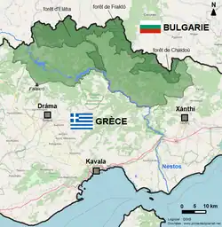 The park's northern boundaries are along the Greek-Bulgarian borders and they start from a point near Kato Neurokopi, at the regional unit of Drama and they end near Dimario, at the regional unit of Xanthi. Its southern boundaries start from the north-east slopes of Mount Falakro and along Nestos river.[3]