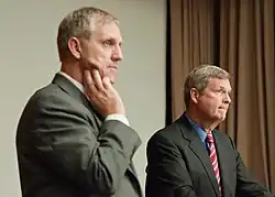 Johnson was first elected Agriculture Commissioner in 1996 and re-elected in 2000, 2004, and 2006. The election in 1996 was one of the closest in North Dakota history. Johnson earned 129,423 votes, while GOP candidate Dina Butcher earned 129,140 votes.[3] He ran against Clare Carlson in 2000.[4] He ran against GOP candidate Doug Goehring in 2004, winning by a little over 1,800 votes. Goehring did not demand a recount.[5] Johnson faced a rematch against Republican Goehring in the 2006 election, winning by a wider margin than in 2004. He resigned as Agriculture Commissioner in 2009 to become president of the National Farmers Union.[6]