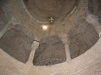 The interior has eight columns in a circle creating two concentric spaces. The wall enclosing them has niches marked by semi-columns with elegant capitals. Traces of frescoes can still be seen.