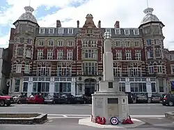 Replacing an earlier hotel of the same name, the Royal Hotel opened in 1899. Historic England describe it as a "forceful building, in the manner of Richard Norman Shaw's more monumental work in this style and demonstrating a characteristic late Victorian approach to urban development".[1]