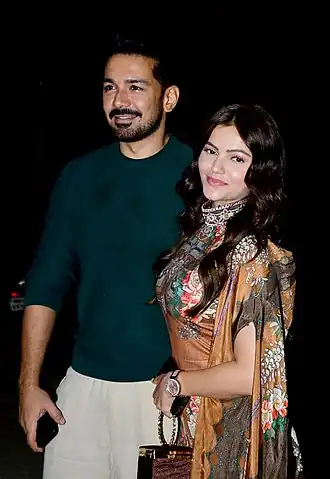 Dilaik married her longtime boyfriend, actor Abhinav Shukla on 21 June 2018 in Shimla.[24] Dilaik revealed it on Bigg Boss 14 that her marriage with Shukla was falling apart before they entered the show.[25] She also revealed that they had given six months to each other before their divorce. However, after the show they decided to continue their marriage while her husband said, "there's no divorce happening".[26] The couple welcomed twin girls on 27 November 2023, Jeeva and Edhaa.[27][28]