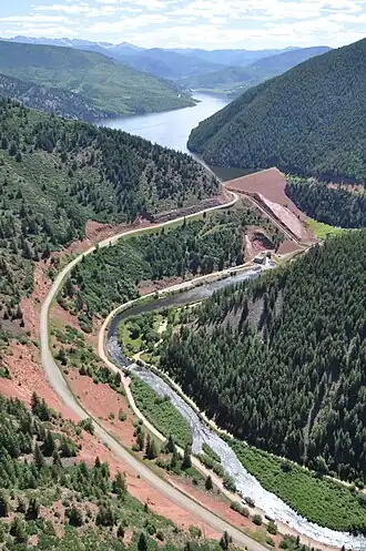 Ruedi Reservoir is a reservoir on the Western Slope of the Continental Divide on the Fryingpan River. It sits about 15 miles (24 km) upstream of the town of Basalt, Colorado, near Aspen.[3] The reservoir is located within the White River National Forest, and straddles the county line between Pitkin County and Eagle County.