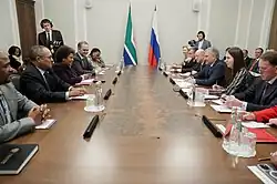 South Africa joined the BRICS group of nations in 2010,[13] a key foreign policy goal of the Zuma administration,[11] with the active support of the Russian Federation.[12] This period also saw a period of closer ties with South Africa's security apparatus as members of South Africa's State Security Agency traveled to Russia for training and the country sought to build its own satellite surveillance capabilities with Russian assistance.[13] During the Zuma administration bilateral agreements on agriculture, arts and culture, defence, education, energy, fisheries, mining, science and technology and transport were signed with Russia.[11] Through his presidency Zuma made a number of medically related trips to Russia to receive treatment for alleged incidents of poisoning.[14][15][16] University of Cape Town academic, Sean Gossel, has stated that bilateral relations between the two countries strengthened the most during the "State Capture years" between 2013 and 2017; thereby linking the growth of relations with the growth of corruption in South Africa.[5]