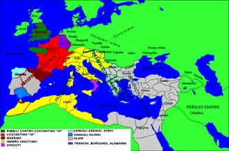 79. ^ a b c Peter Heather, The Fall of the Roman Empire: A New History of Rome and the Barbarians, (Oxford University Press, 2006), p. 226.