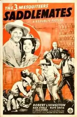 Saddlemates is a 1941 American western film directed by Lester Orlebeck and starring Robert Livingston, Bob Steele and Rufe Davis.[1] Part of the "Three Mesquiteers" B-movie series, it was produced and distributed by Republic Pictures.