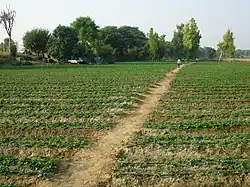 Saharwa is a village in Hisar tehsil and district in Haryana, India, located on the Hisar-Isarwal road about 28 km from Hisar. It is situated at the boundary of the Hisar and Bhiwani districts. It also marks the onset of Thar desert. Saharwa village was established about 350 years ago in what was then Punjab province. The village has over the last decade become known for strawberry cultivation, and it is now the second largest producer of strawberries after Mahabaleshwar, Maharashtra.[1] There is a small but locally revered temple of Khattu Shyamji. In 2013 the village was identified by the Geological Survey of India as having large reserves of gypsum.[2]