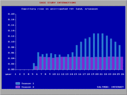 The program also offers the possibility to follow historic records with annually changing input values (e.g. rainfall, irrigation, cropping rotations), the calculations must be made year by year. If this possibility is chosen, the program creates a transfer file by which the final conditions of the previous year (e.g. water table and salinity) are automatically used as the initial conditions for the subsequent period. This facility makes it also possible to use various generated rainfall sequences drawn randomly from a known rainfall probability distribution and to obtain a stochastic prediction of the resulting output parameters.