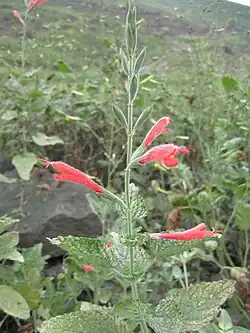 Salvia tubiflora is a perennial native to a small area of western Peru and northern Chile near the tropic of Capricorn, growing at elevations from 800 feet (240 m) to 1,600 feet (490 m).[1]