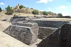 Looking over Building 3 towards the Nuestra Señora de los Remedios church on the pyramid.