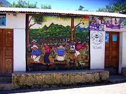 While Tz'utujil is the primary indigenous language of San Juan Laguna, and that language is still spoken as a first language by a majority of the residents of the township's lakeside cabecera or head-town, a notable portion of the population of the township's three main villages, Palestina, Panyevar, and Pasajquim (Pa Saq K'iim), now speak K'ichee'. Located in the mountains west and southwest of the cabecera of San Juan, these three villages began being settled by K'ichee' colonists during the Colonial Period, while San Juan La Laguna was still known as "San Juan Atitlan." The Testamento Ajpopoljay, the only colonial titulo written in the Tz'utujil language known to have survived to the twentieth century, was authored by a Juanero named Jerónimo Mendosa in 1569 and was later presented by his descendants to the Spanish colonial government as part of San Juan's land titles in 1640, during a dispute over land invasions by K'iche' people from Santa Clara La Laguna and Santa Catarina Ixtahuacan.[6][7] Given that the document has not been locatable by the Archivo General de Centroamérica since the late 1990s, it is presumed to have been stolen after the last known direct consultation with it by a scholar in the early 1990s.[8] Although Guatemalan scholar Mario Crespo M. published an analysis of the document's contents based on a line-by-line preliminary translation of it sometime before 1968, it does not appear that he or anyone else transcribed the actual Tz'utujil text. Robert Carmack reportedly photocopied the document in the 1960s, but that copy has disappeared.