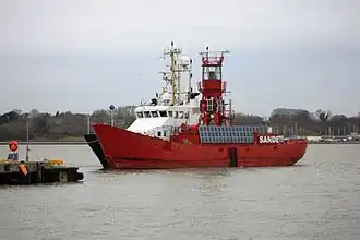 Sandettie is a lightvessel station located at Sandettie Bank in the North Sea. It is one of the 22 coastal weather stations whose conditions are reported in the BBC Shipping Forecast.[1] The vessel is named after her location on the Sandettie Bank, due north of Calais and due east of the South Foreland. The ship has no engine and is not crewed. Its lights are powered by solar panels.