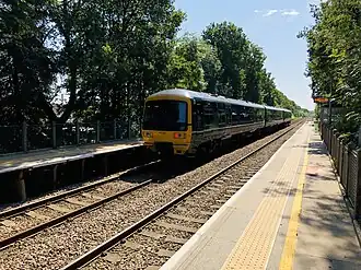 Sandhurst railway station, known by National Rail as Sandhurst (Berks),[1] serves the town of Sandhurst in Berkshire, England. The station is managed by Great Western Railway, who operate services on the North Downs Line from Reading to Guildford, Redhill and Gatwick Airport. The station is located 11.5 miles (18.5 km) south-east of Reading.