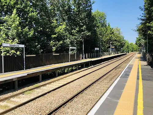 1. ^ a b "Sandhurst (Berks) station". National Rail Enquiries. Retrieved 14 January 2020.
