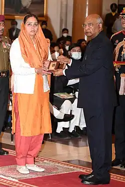 The President of India presented the Kirti Chakra to Subedar Sanjiv Kumar on 22 November 2021, in recognition of his supreme sacrifices and leadership, which was received by his wife.[15][16][17]