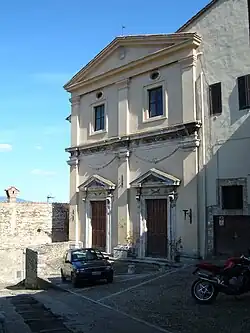 The construction of the church was started in the late 16th century adjacent to a Benedictine order convent. It was completed in 1602 and then located adjacent to the wall of the town. The church has an elegant facade with Doric travertine pilasters and garlands. The single nave leads to an apse which contained a grate by which the cloistered nuns could receive the eucharist. On the walls and main altar are canvases painted by the Zuccari depicting the life of the titular saint. The monastery was ultimately suppressed in 1892.[1][2]
