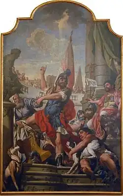 Saint Alexander of Bergamo overturns a pagan altar by Giacomo Ceruti, 1645