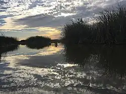 Ibn Rustah described the Bata'ih as covered by reed beds crossed by water channels, where enormous amounts of fish where caught, then salted and exported to neighboring provinces.[2] The water level was too shallow for most river boats to pass through, and only special pole-propelled vessels called mashhuf could be used for transport.[2] Most of the marshes were covered by water, but there were some areas with good soil, where people formed settlements, grew crops, and dug canals for irrigation.[2]