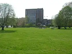 Scandic Park Hotel (formerly Rica Park Hotel) is a large hotel in Sandefjord, Norway. The Park Hotel was completed in 1960 and was the largest and most luxurious hotel in Vestfold County when established.[2] Park Hotel was built on a site that previously belonged to Sandefjord Spa.[3][4] It is located next to the harbor and near the city center. It caters for conferences, business functions, and courses. Most rooms overlook the Sandefjordsfjord. The hotel houses three restaurants: Parkstuen, Kosmos, and Vinstuen.[5] It has spa facilities, gyms, solariums, saltwater swimming pools, saunas, conference halls, and a banquet hall.[6]