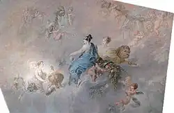 Built by the Wartensleben family in 1739 to replace a previous building on the site that had burnt down, the Schloss passed to the von der Gröben family in the second half of the century. In 1774, the property and adjacent land parcels including three neighboring estates were purchased by Prince Henry of Prussia, who resided in nearby Rheinsberg Palace, and one year later were gifted to his paramour, Christian Ludwig von Kaphengst (1740-1800). In this way Heinrich complied with the command of his brother, King Frederick II, to remove Kaphengst from the court at Rheinsberg. Kaphengst furnished and decorated the palace lavishly, commissioning ceiling frescoes from Bernhard Rode, including one depicting an apotheosis of Heinrich. The estate grew with the construction of additional buildings, including the stables. Under Kaphengst and his successors, the Baroque garden was extended, and an English garden edging most of the lake shore was landscaped by Peter Joseph Lenné.