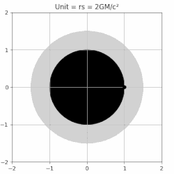 The quadratic solutions above ensure that router is always greater than 3rs, whereas rinner lies between 32 rs and 3rs. Circular orbits smaller than 32 rs are not possible. For massless particles, a goes to infinity, implying that there is a circular orbit for photons at rinner = 32rs. The sphere of this radius is sometimes known as the photon sphere.