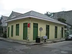 Example of a former corner grocery in New Orleans. Corner grocery stores became uncommon in the United States in the latter half of the 20th century.
