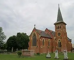 Allan Cunningham was the first recorded European person to travel into the Scone area, reaching the Upper Dartbrook and Murrurundi areas in 1823.[6] Surveyor Henry Buffier travelled through the area, prior to passing over the Liverpool Range above Murrurundi in 1824. The first properties in the area were Invermein and Segenhoe in 1825. The town initially started as the village of Redbank in 1826 and in 1831 Hugh Cameron, a Scottish descendant put forward the name of Scone to Thomas Mitchell.[6] It was gazetted as Scone in 1837 and during the early days was renowned for its large pastoral properties including Belltrees and Segenhoe.[7] Early buildings were St Luke's Church, Scone Post Office, the Old Court Theatre (that is now a hall for musicals and plays), and the St Aubins' Inn.